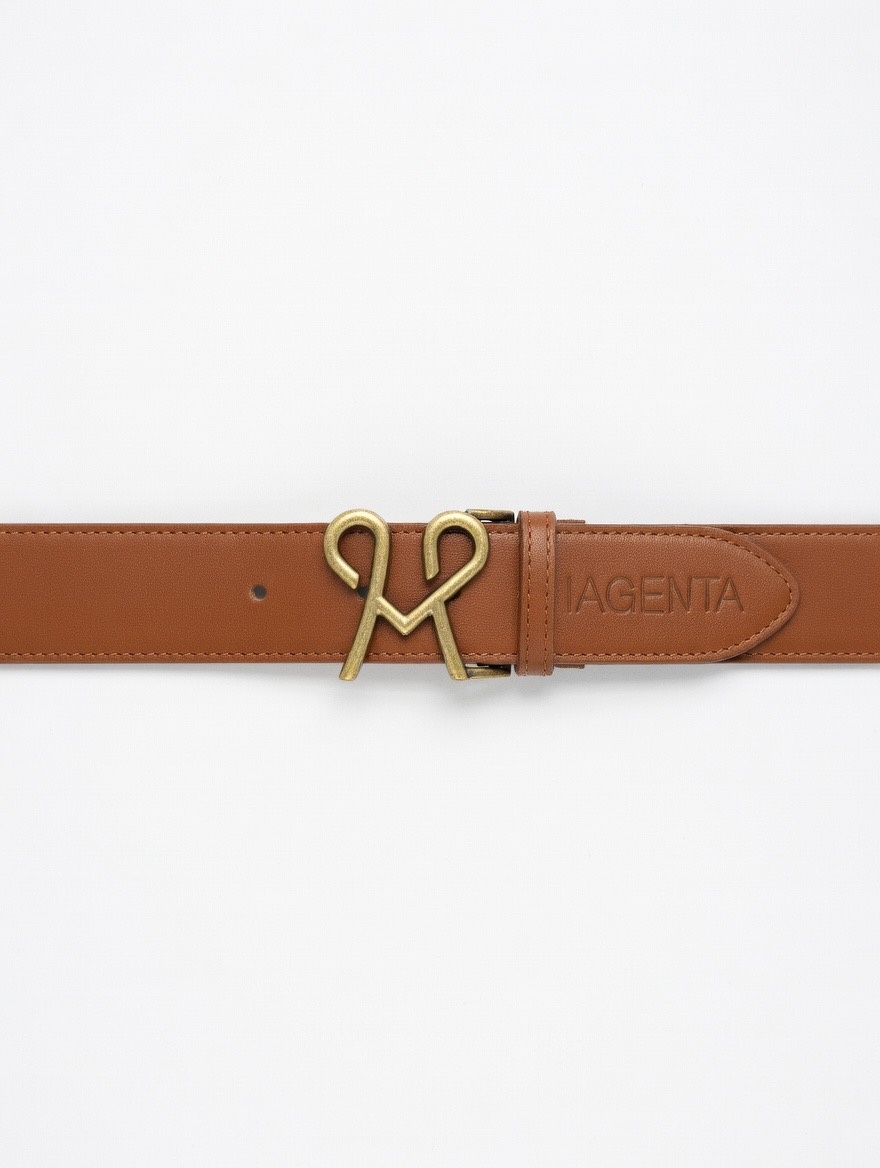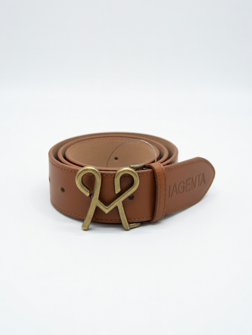Valódi bőrből készült, barna színű Magenta öv, arany Magenta márkajelzésű csattal. Bármilyen alkalomra és minden öltözékhez kombinálható. Szélessége 3,5cm.