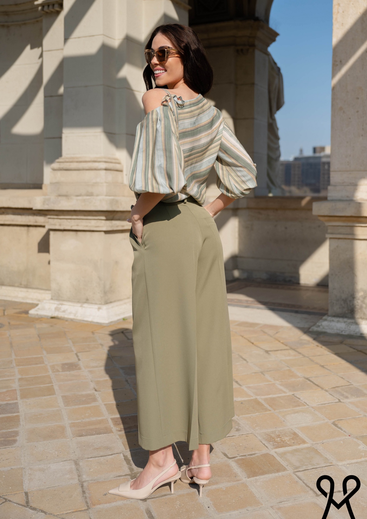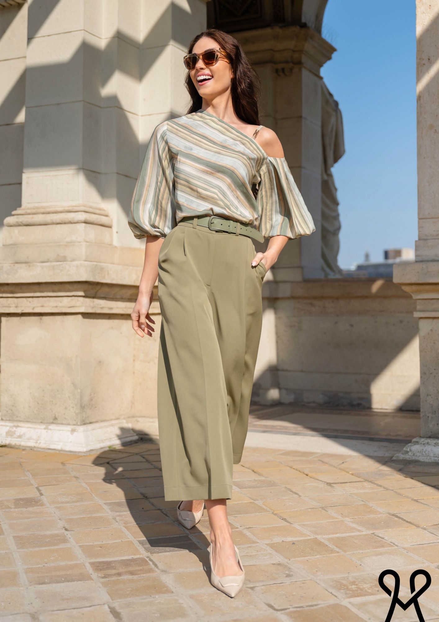 Lazább, bő szabású, csíkos női felső félvállas kialakítással és bő ujjú fazonnal, a nyári kollekció kényelmes, trendi darabja.