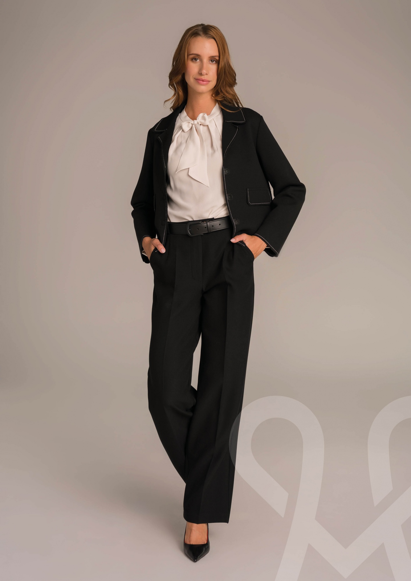 Bővebb fazonú, elasztikus búvár zakó, amely elöl gombolással záródik, tűzött zsebfedőkkel díszítve a stílusos megjelenésért és kényelmes viseletért.