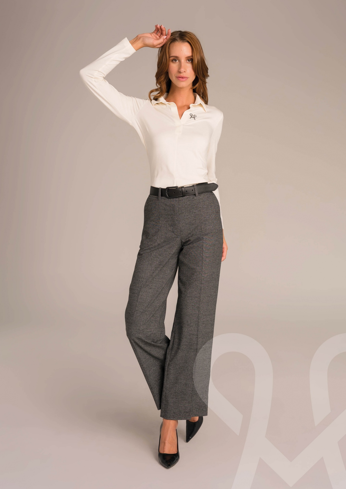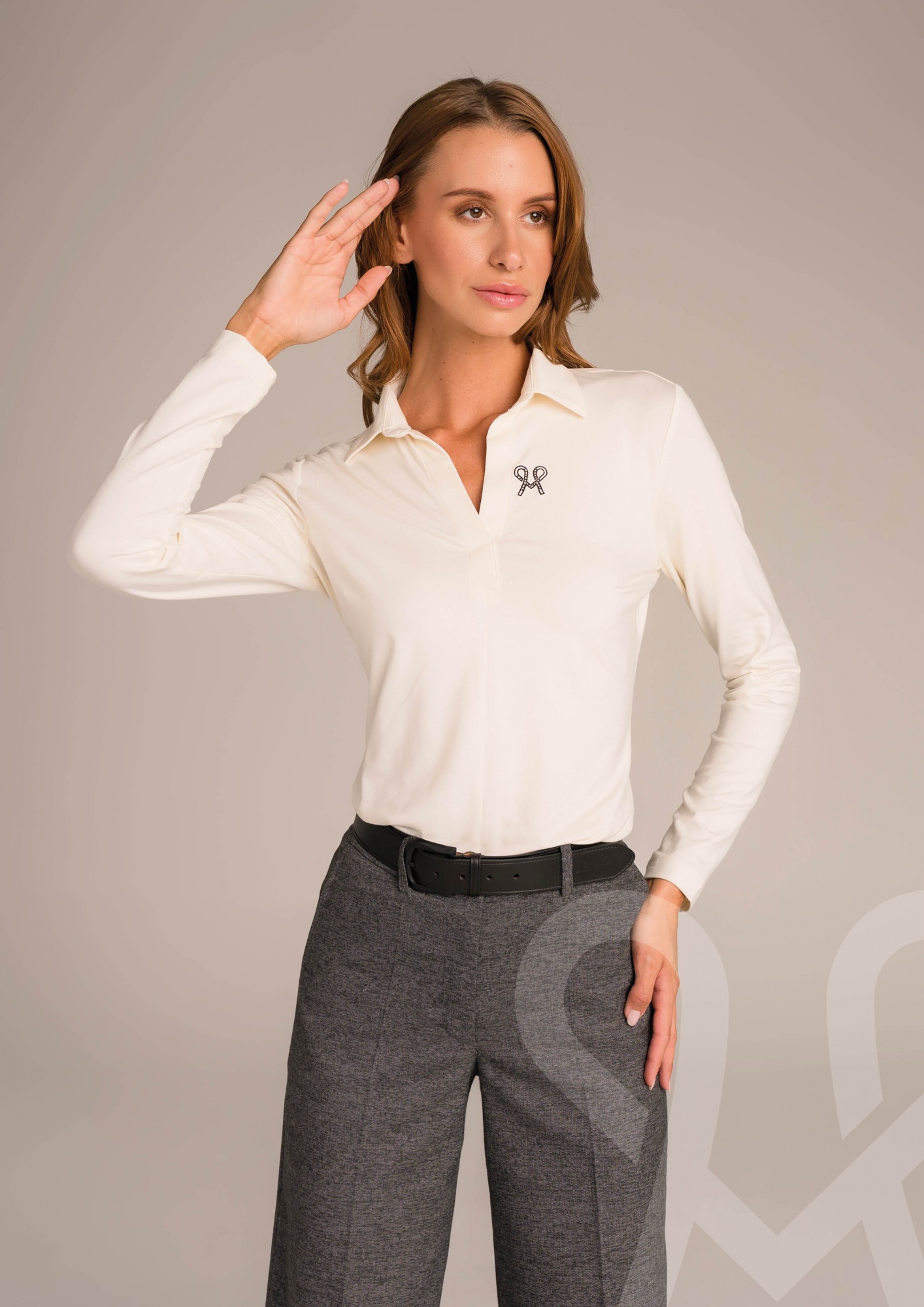 Ez a Magenta termék egy szűkebb fazonú, elasztikus viszkóz felső, V-kivágással és galléros megoldással, amelyet az elején elhelyezett diszkrét márkajelzés díszít, elegáns és kényelmes viseletet biztosítva a mindennapokra.