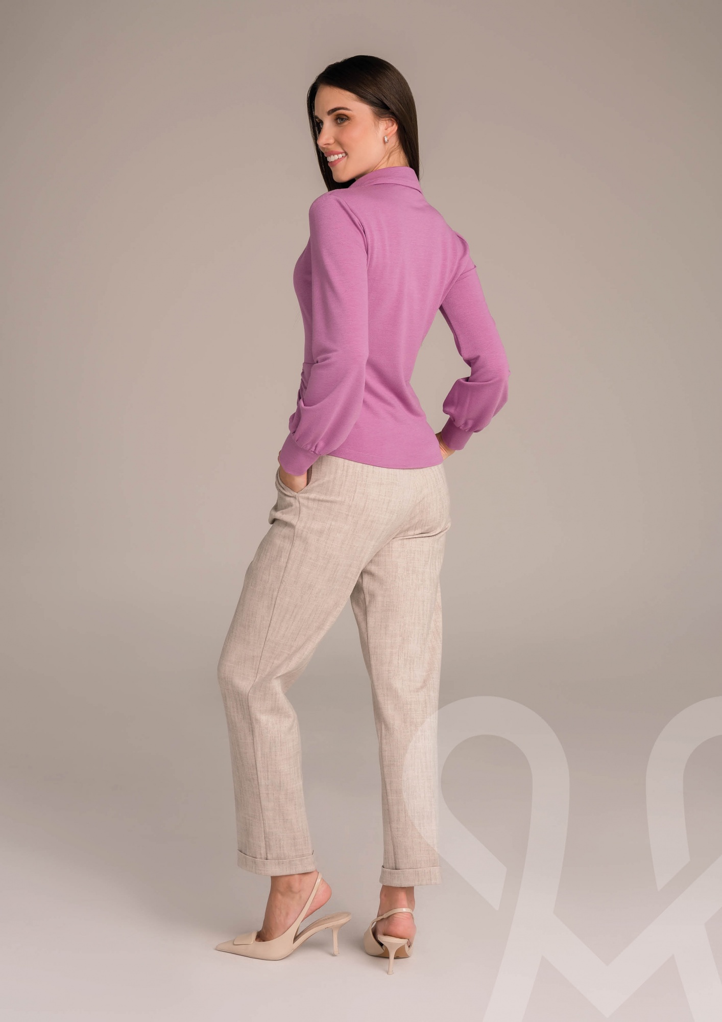 Alakot követő, csinos fazonú Magenta felső, amely karcsúsított szabásával és elasztikus anyagával kiemeli a nőies vonalakat. A lila szín különleges megjelenést kölcsönöz, míg az elején átlapolt megoldás, a díszgombok és a gallér elegáns, mégis modern részletet adnak ennek a stílusos darabnak.