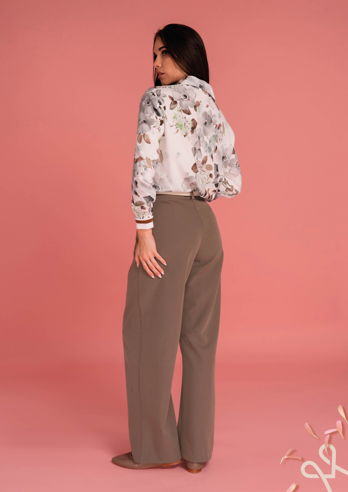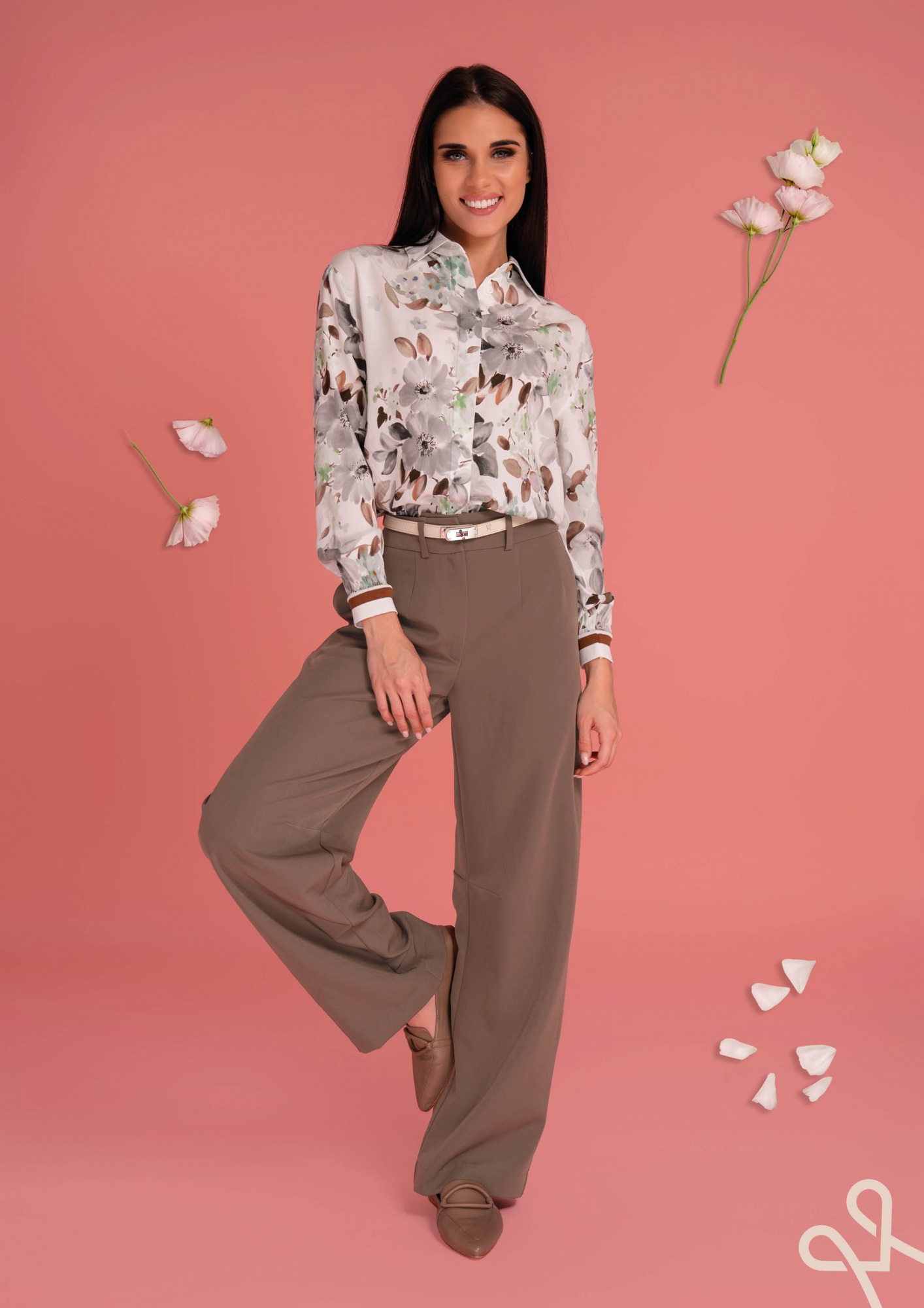 Mintás, laza szabású pamut ing elején gombos záródással és ujja alján passzéval díszítve, amely kényelmes, stílusos tavaszi viseletet biztosít.