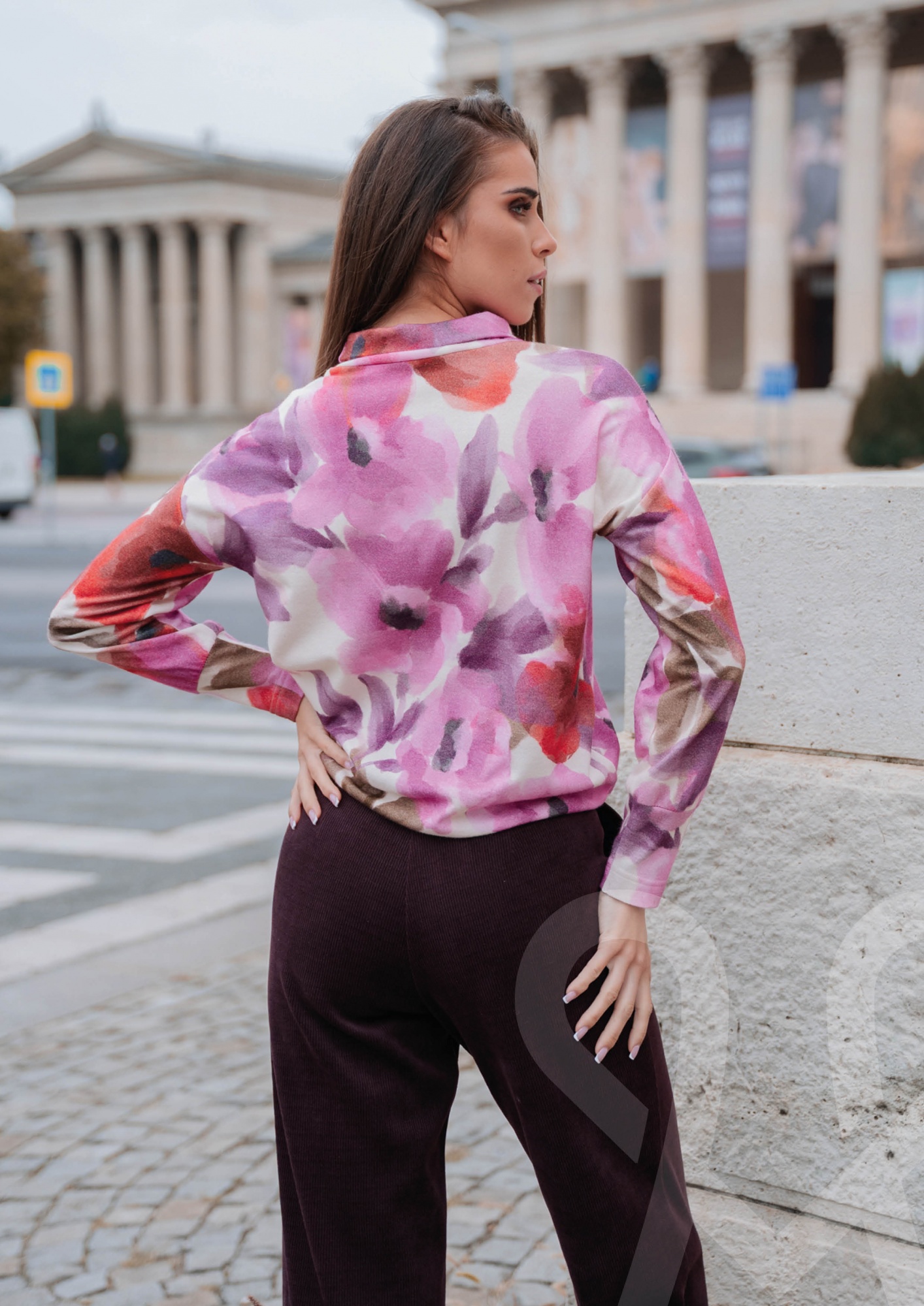 Kényelmes, bővebb fazonú, mintás felső finom kötésű anyagból, magas garbóval és hosszú ujjal a laza, mégis stílusos megjelenésért.