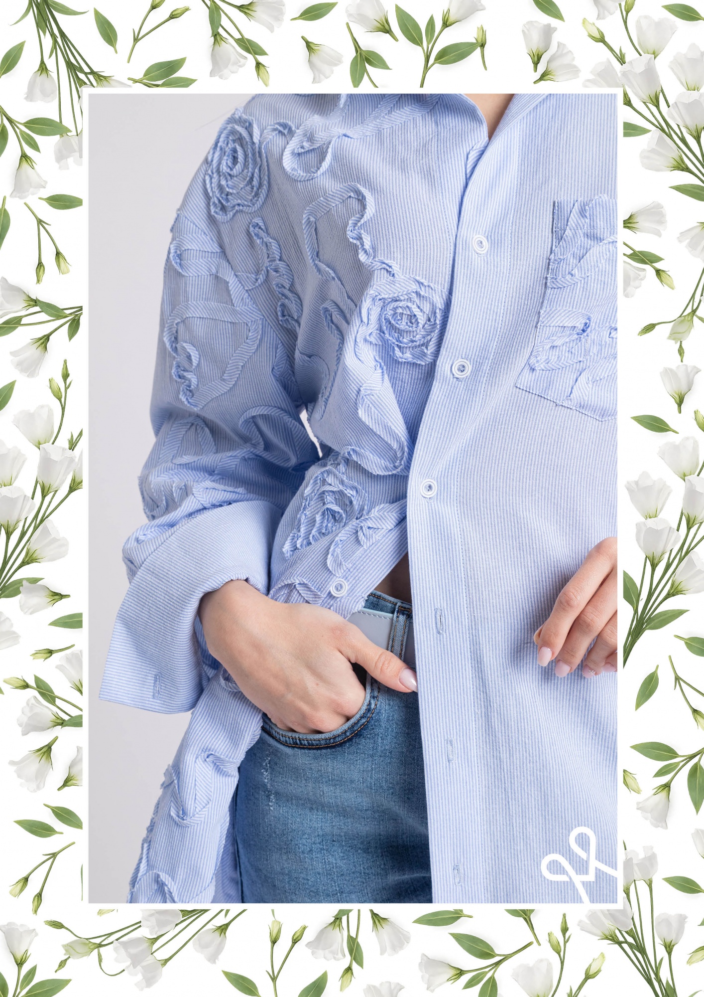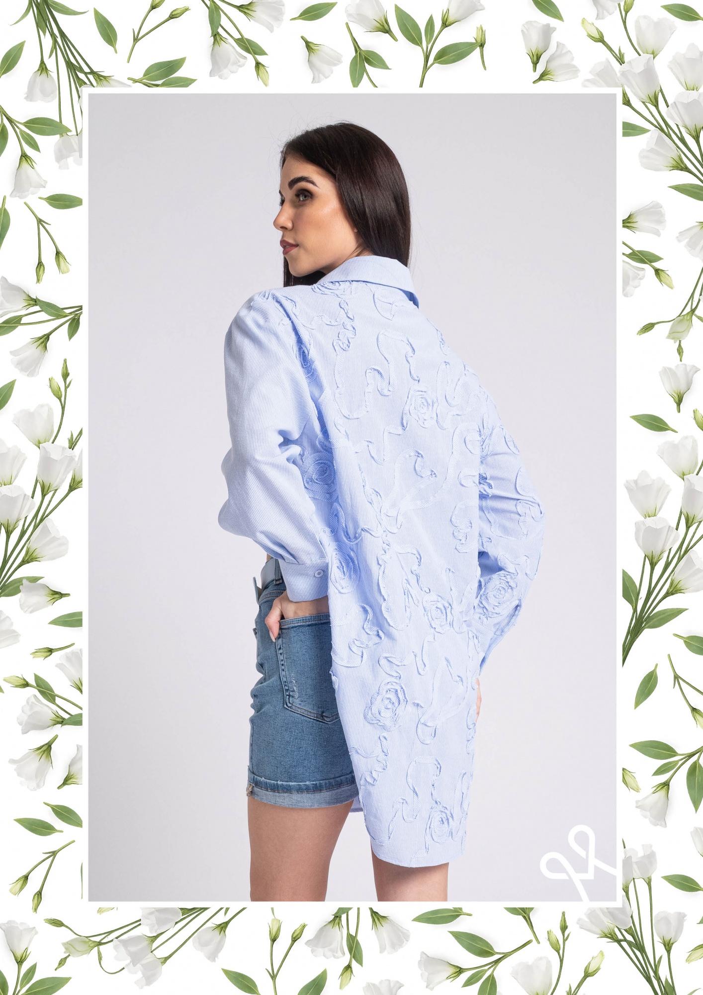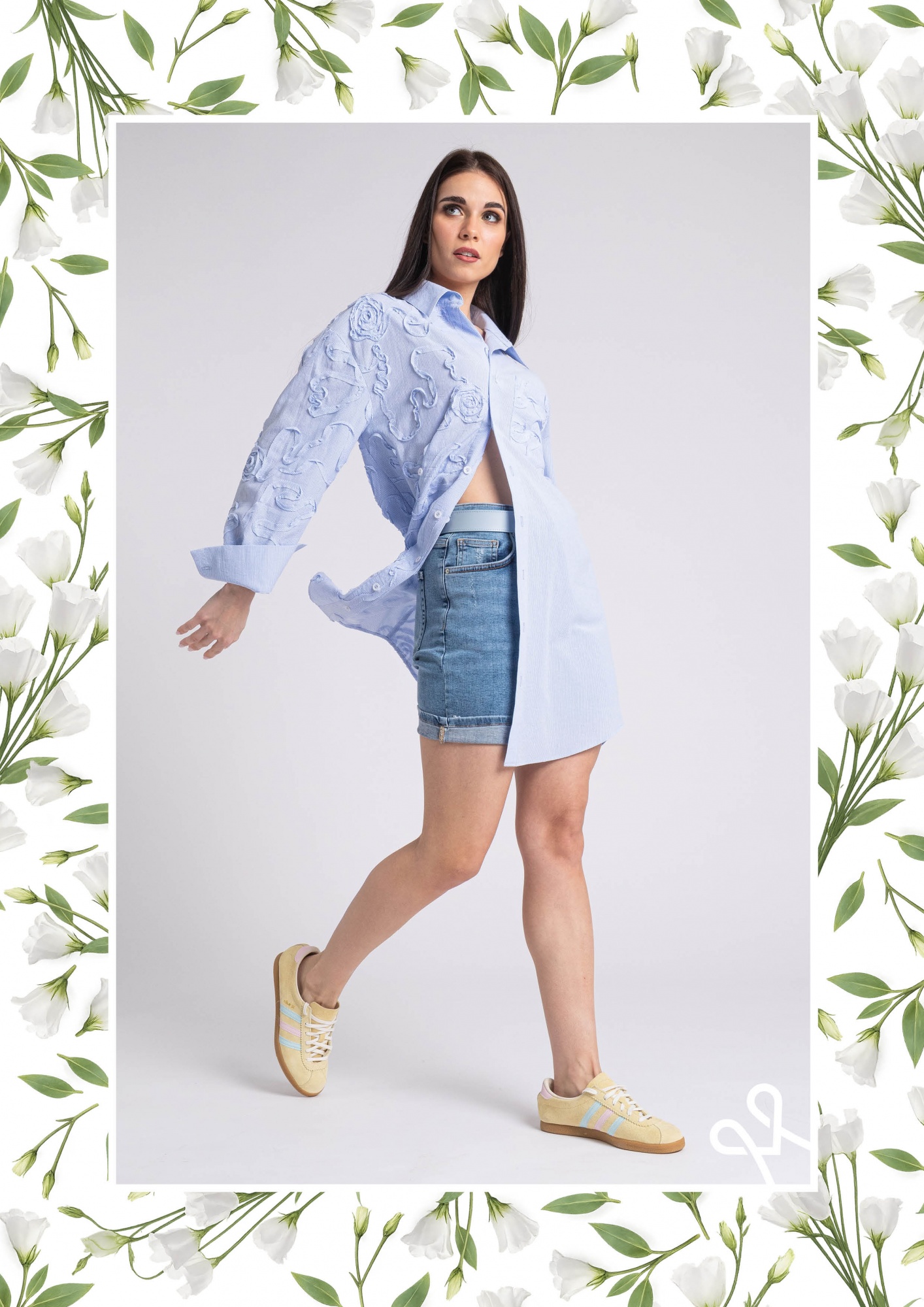 Bővebb, oversize nyári ing gombos záródással, foltzseb díszítéssel és gombolható széles mandzsettával a kényelmes, laza megjelenésért.