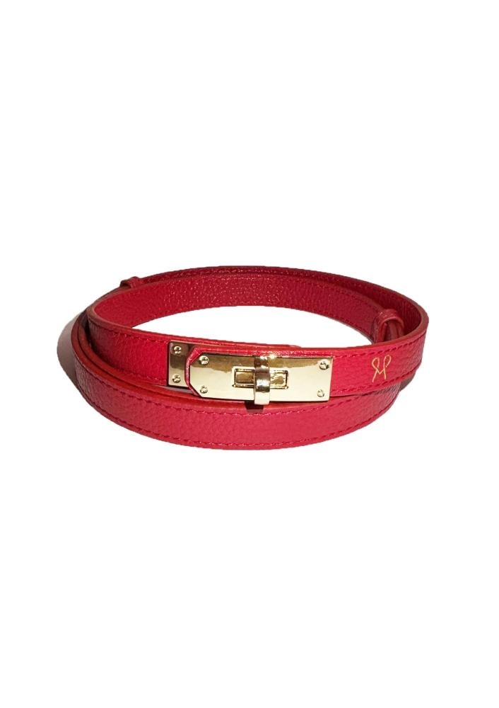 Vékony, valódi bőrből készült Magenta öv piros színben, állítható csattal. Letisztult megjelenésének köszönhetően könnyedén kombinálható mind hétköznapi, mind elegáns öltözetekkel.