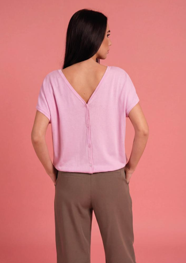 Elasztikus kötött anyagból készült, bő szabásvonalú Magenta felső, hátán gombokkal.