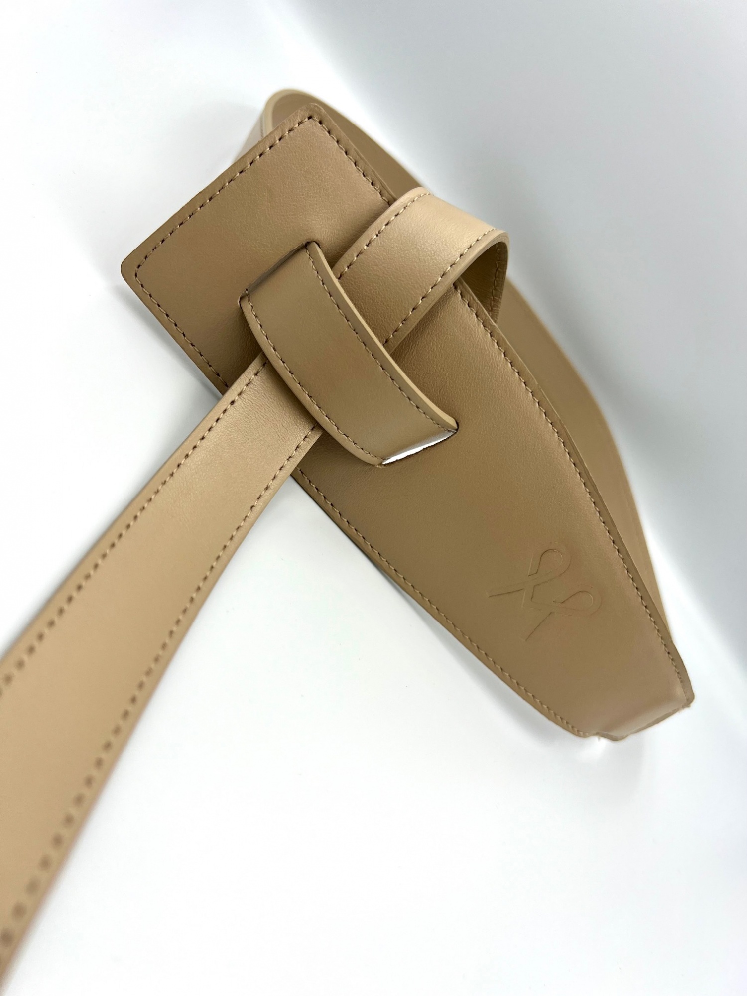 Sötét bézs színű, áthajtókás, valódi bőrből készült Magenta öv. Elején Magenta márkajelzés. A termék egyméret méretben készült.