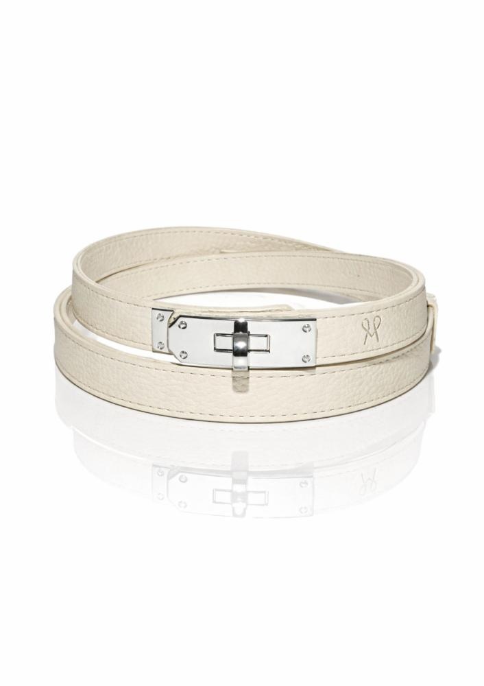 Vékony, valódi bőrből készült Magenta öv vaj színben, állítható csattal. Letisztult megjelenésének köszönhetően könnyedén kombinálható mind hétköznapi, mind elegáns öltözetekkel.