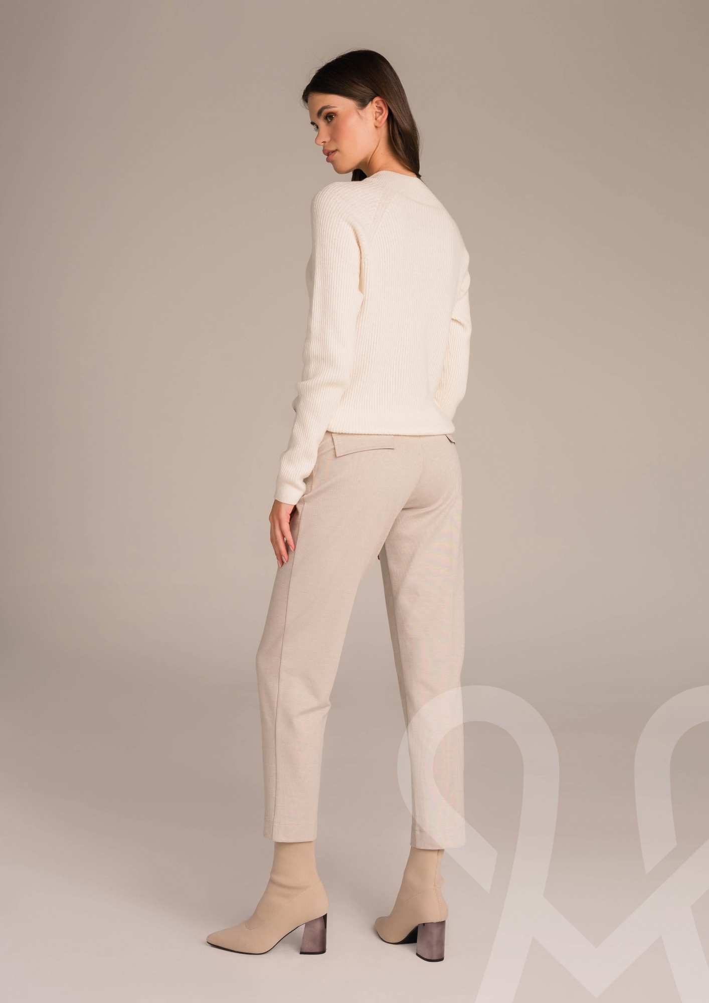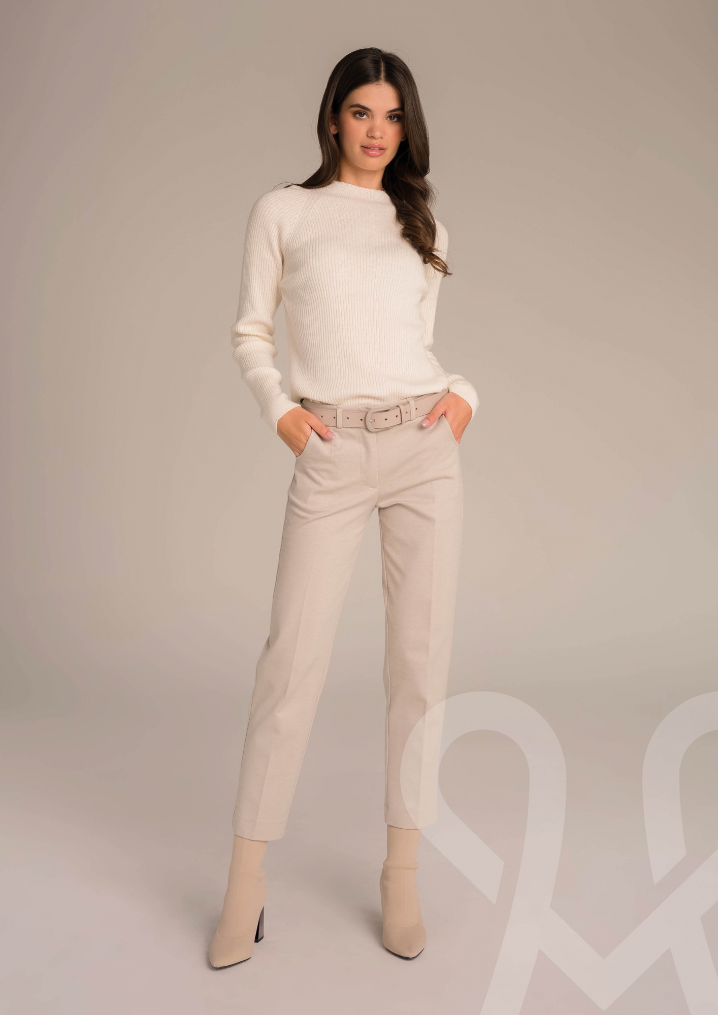 Elasztikus kötött anyagból készült, szűkített szabásvonalú, vaj színű Magenta pulóver magas nyakrésszel.